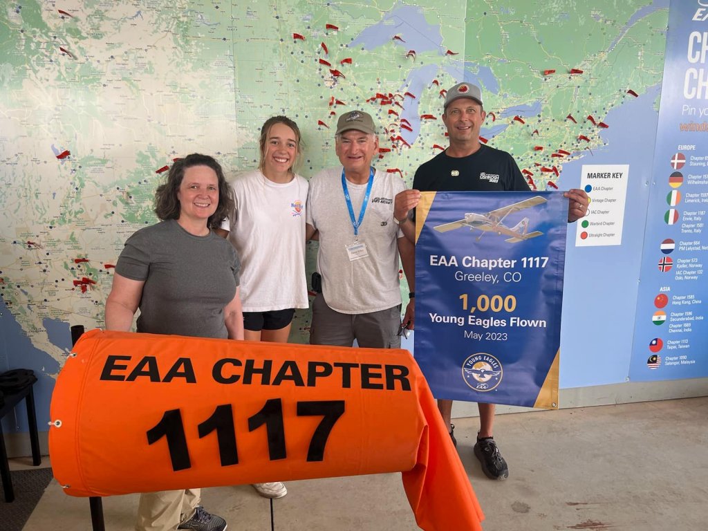 A visit to the Blue Barn, which is the home of the EAA chapters was in order for a number of reasons, most importantly, to pick up our banner for having given 1,000 Young Eagles flights! Chapter 1117 YE coordinators Darrel and Jim (cannot even begin to tell you how much I love these guys!), and YE Samantha (love her too!) were on hand to get our banner. Thanks for the Young Eagles 30th Anniversary pins, Jim! I will wear mine with pride.