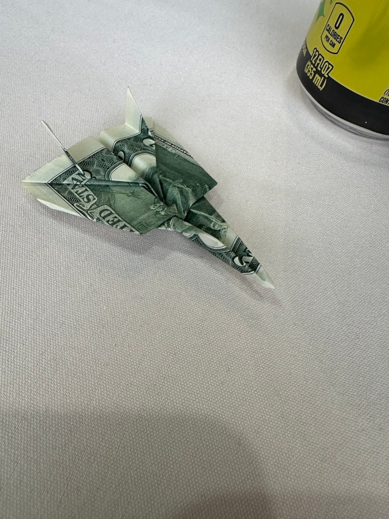 But maybe even better was during lunch when one of the other participants sat down at my lunch table and pulled out an envelope of $2 bills. He started folding and then presented us with origami $2 F-18s! Totally something to aspire to. I will treasure this little airplane! I have found a YouTube on how to make these, but I am not sure I am gong to try. I have enough airplane building going on already.